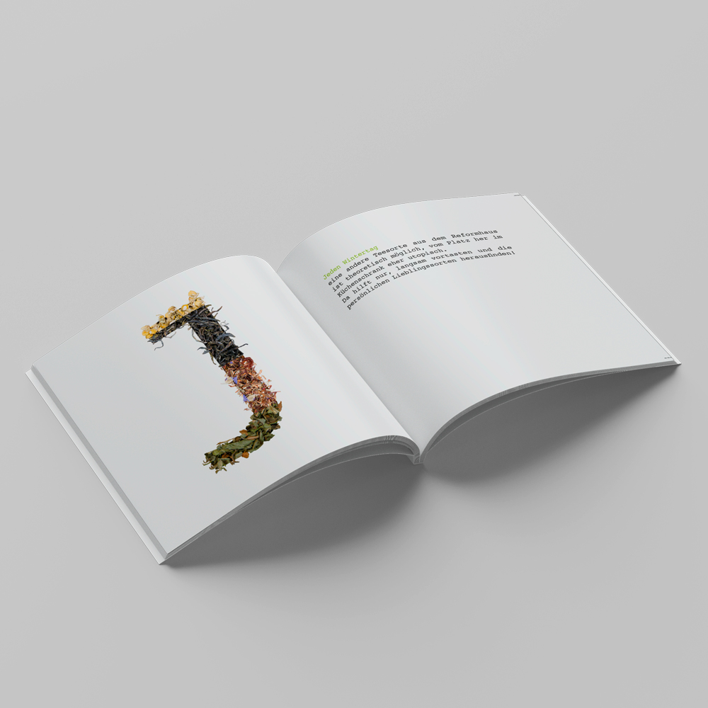 In diesem Fall ist eine Broschüre entstanden. Um die Seiten spannend zu gestalten, habe ich die einzelnen Buchstaben des Alphabets aus Fotomaterial ansprechend freigestellt.